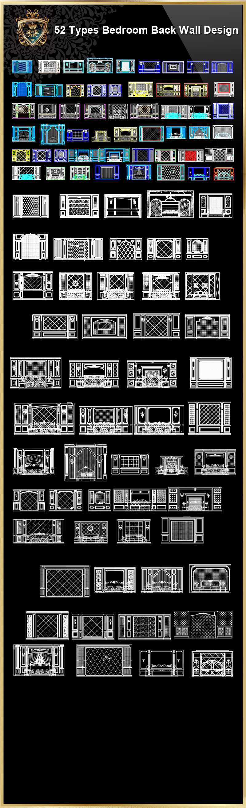 ¡i52 Types of Bedroom Back Wall Design CAD Drawings¡j