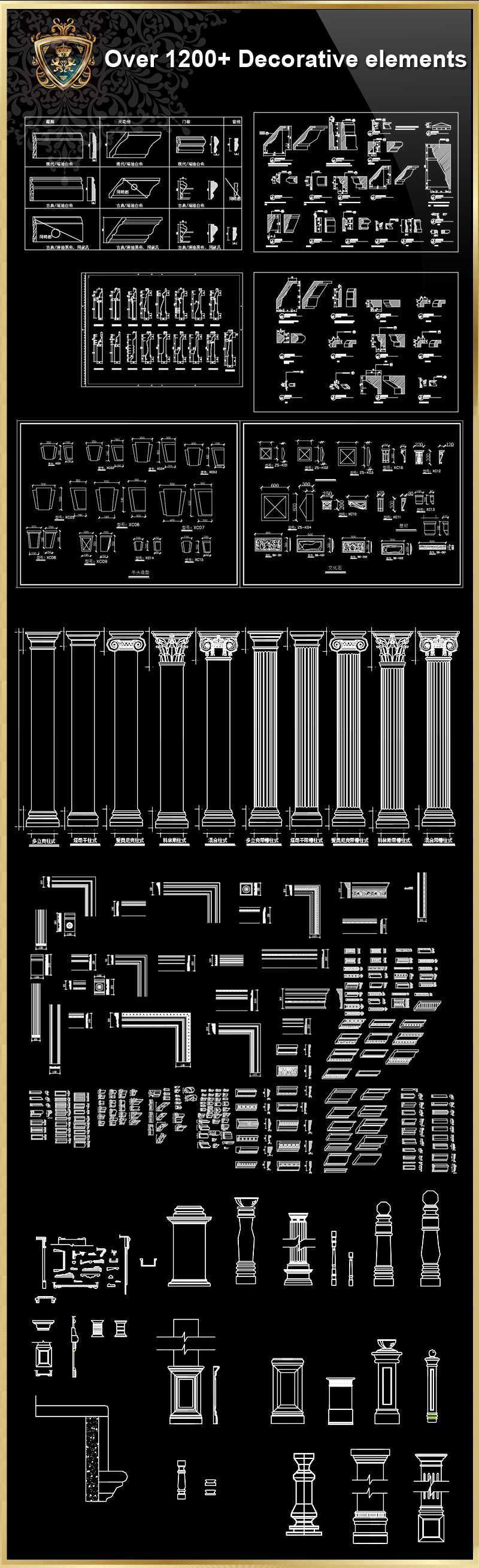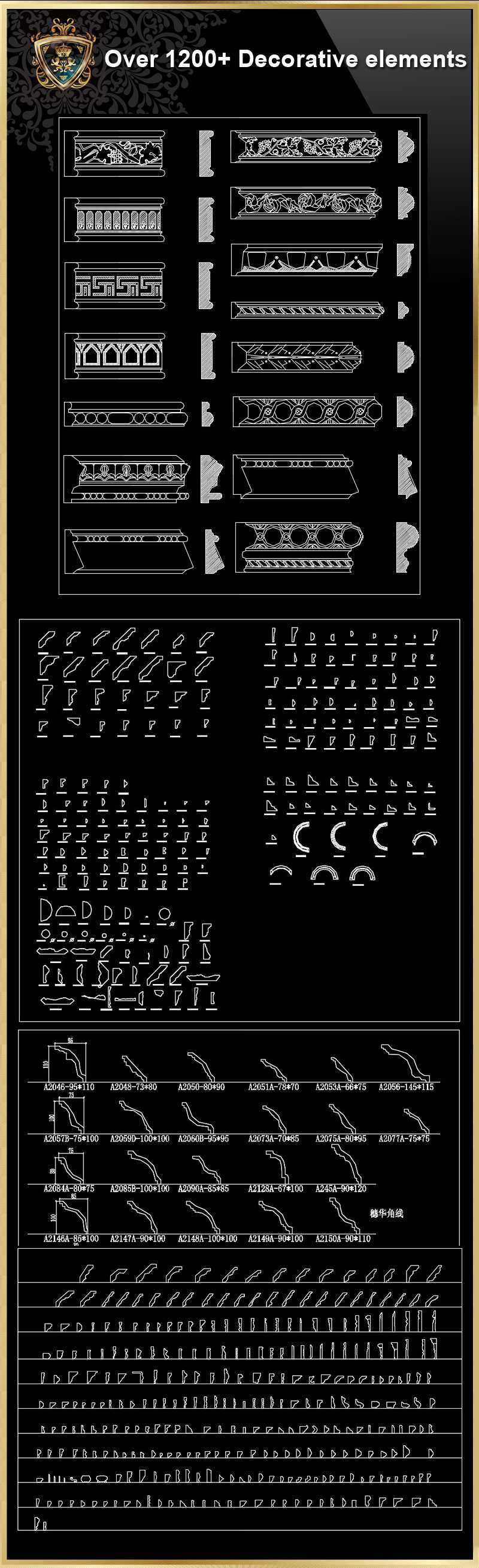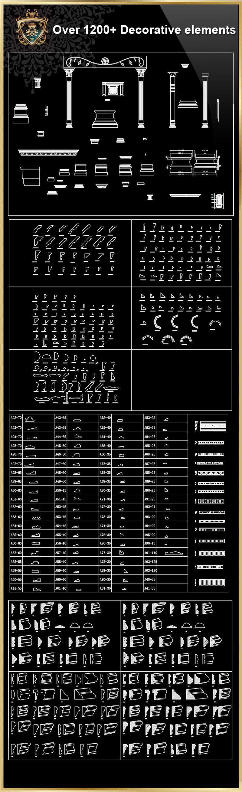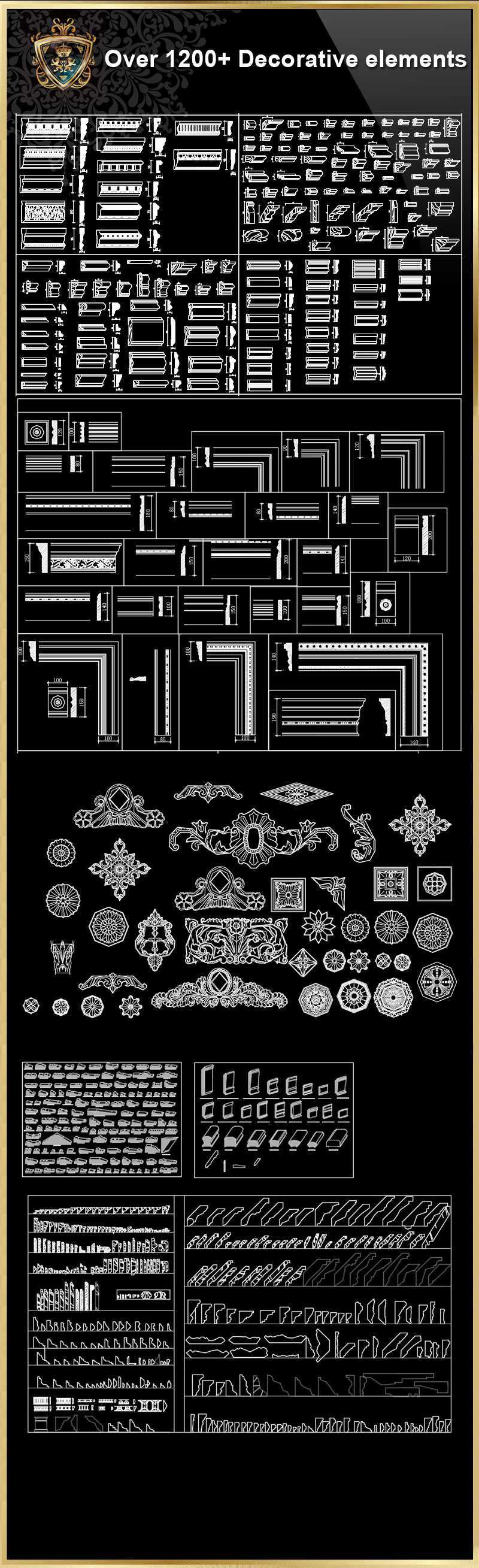 ”iOver 1200+ Decorative elements CAD Blocks V.1”j