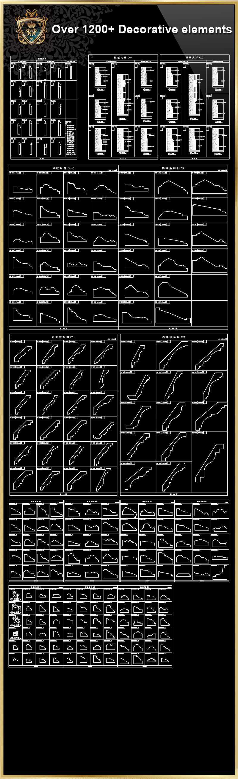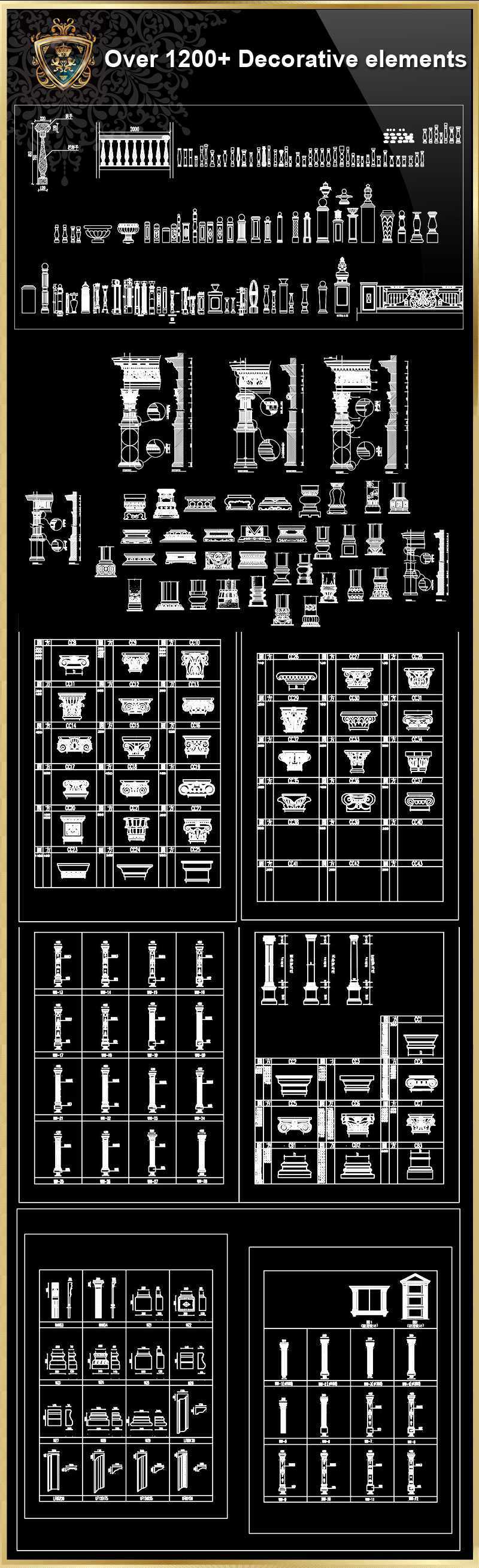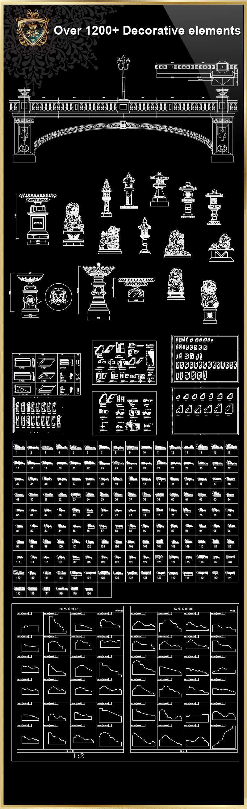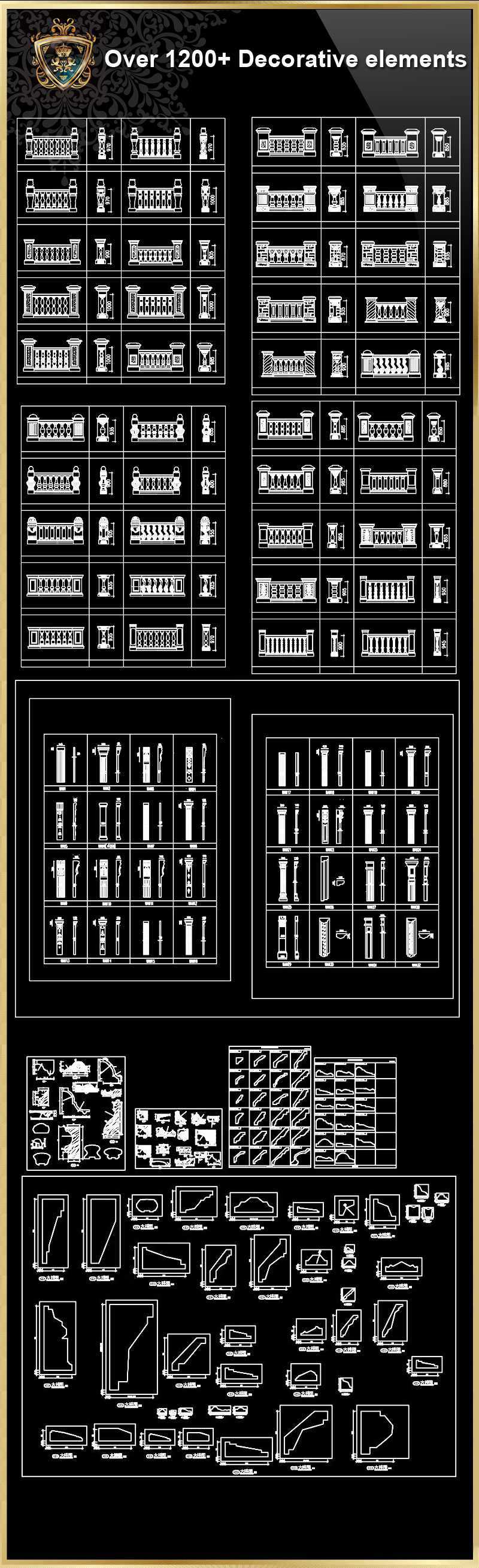 ”iOver 1200+ Decorative elements CAD Blocks V.2”j