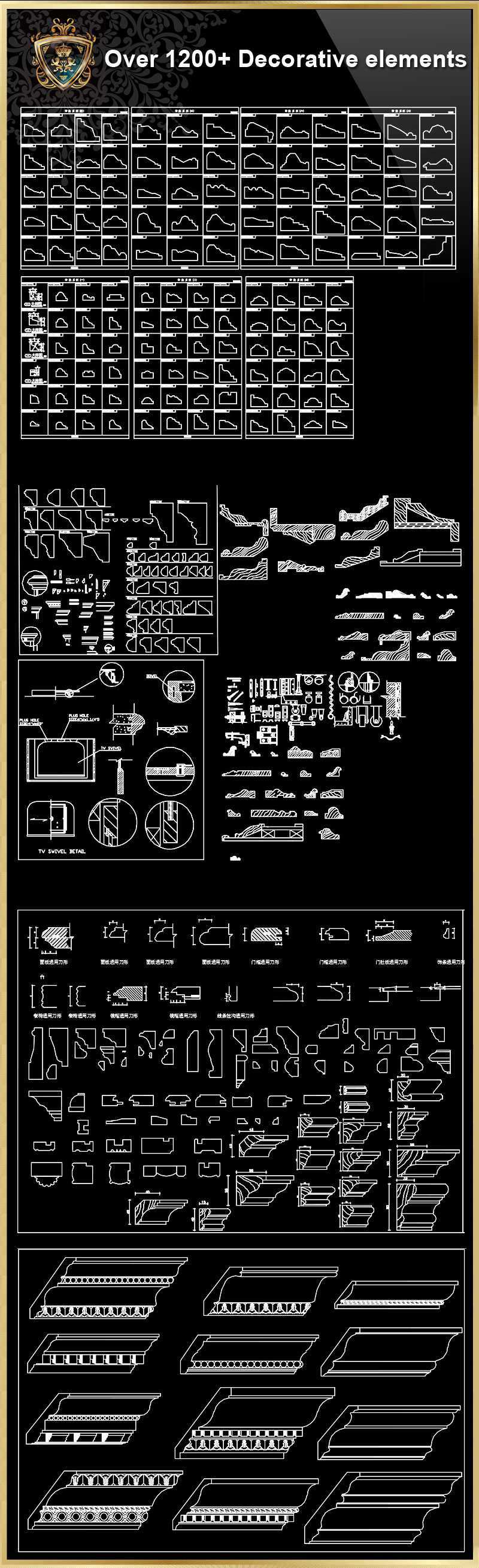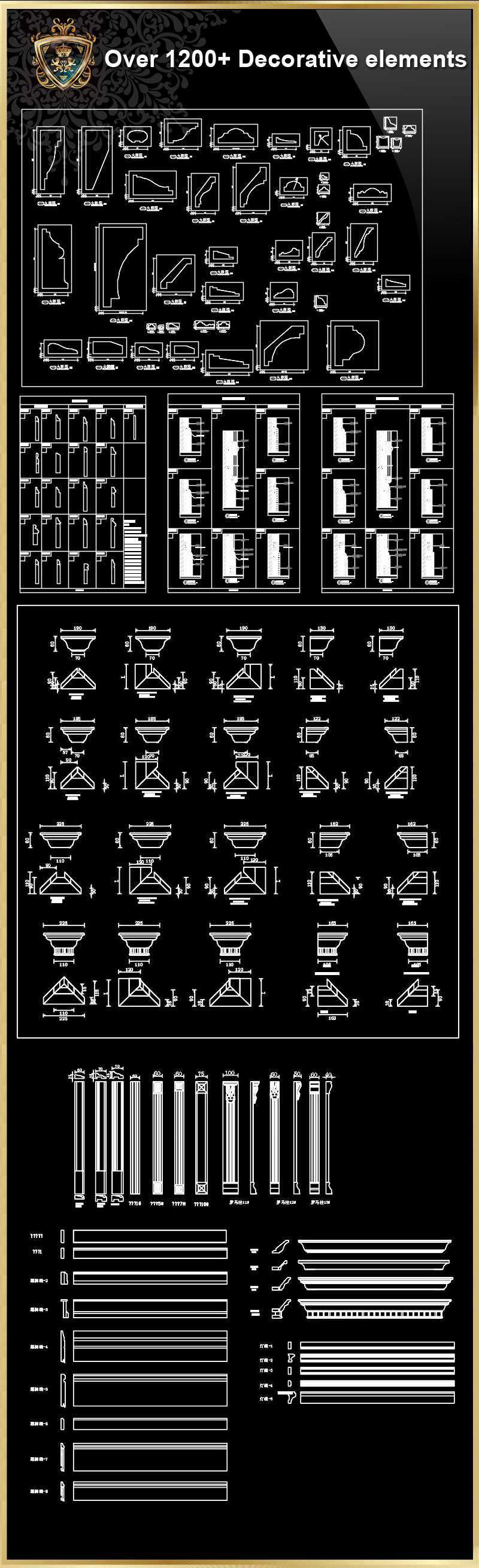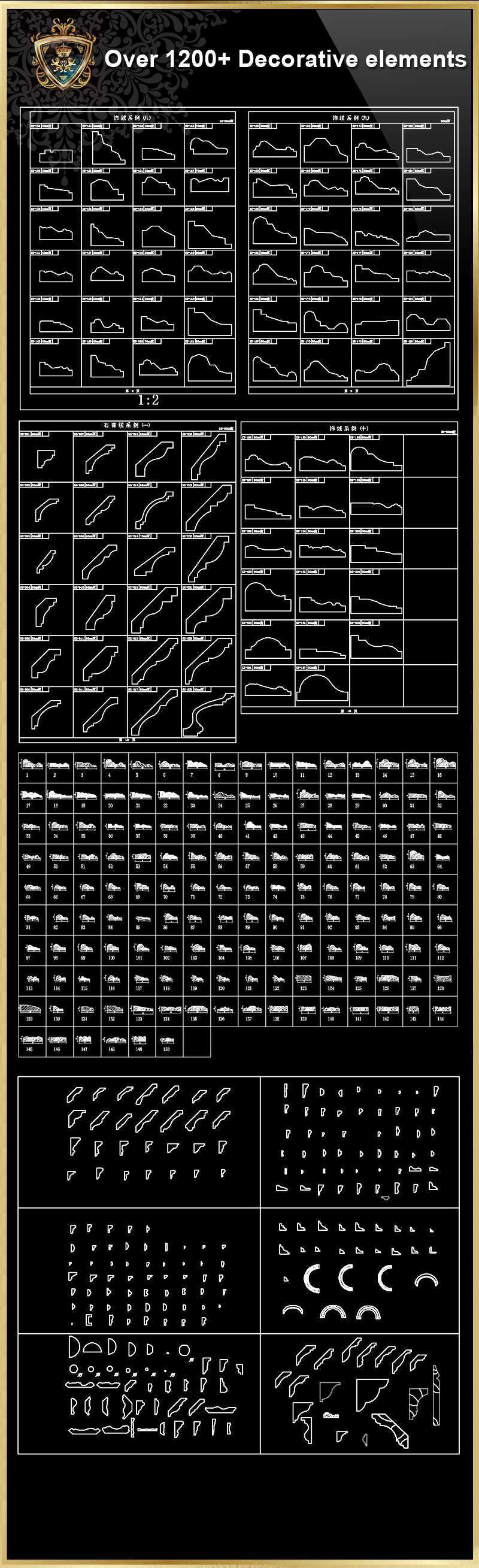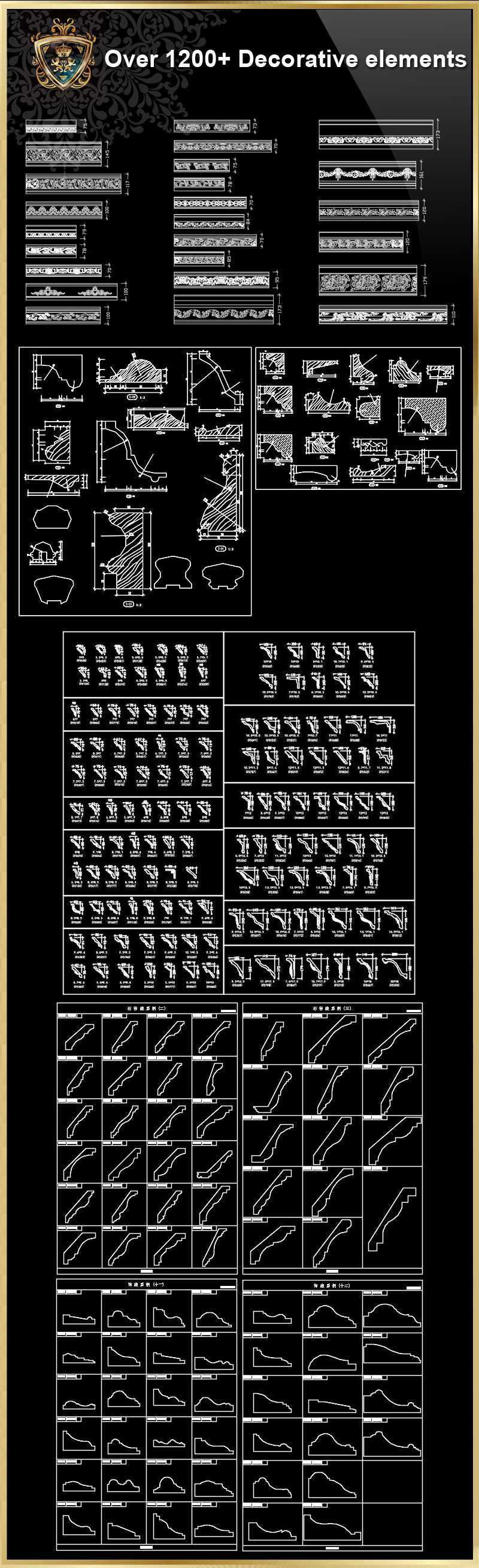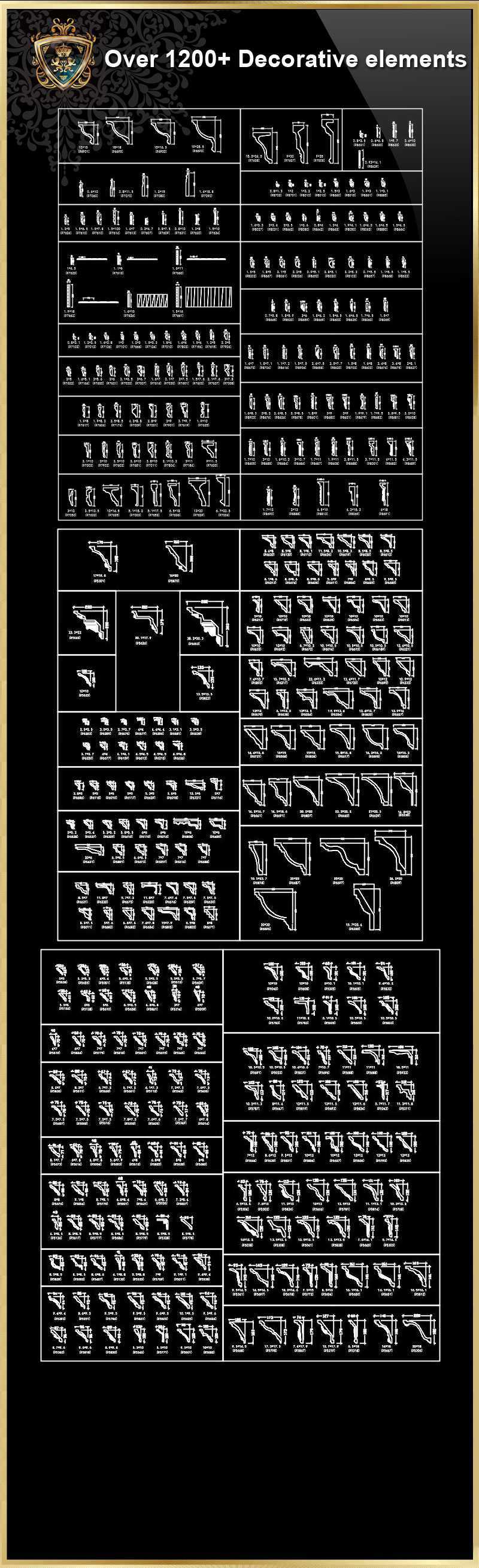 ”iOver 1200+ Decorative elements CAD Blocks V.4”j